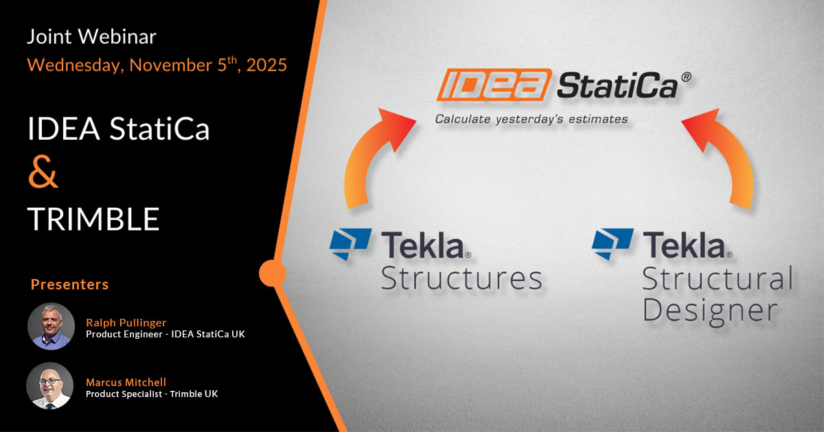 Structural engineers face growing pressure to deliver faster, more efficient, and more reliable designs — all while ensuring safety and code compliance. In this joint webinar, Trimble and IDEA StatiCa join forces to show how combining Tekla Structures, Tekla Structural Designer, and IDEA StatiCa unlocks smarter workflows from model to analysis and connection design.